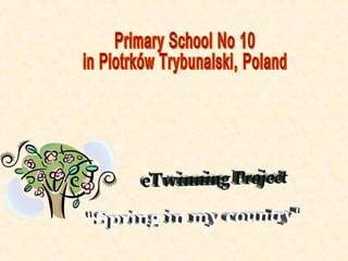 Poland is located in central Europe and is bordered by Germany, the Czech Republic, Slovakia, Ukraine, Belarus, Lithuania and Russia. The document also discusses Piotrków Trybunalski, a city in central Poland with a population of around 80,000 people that contains Primary School No. 10, a small school in the city center with approximately 300 students aged 6 to 12.
