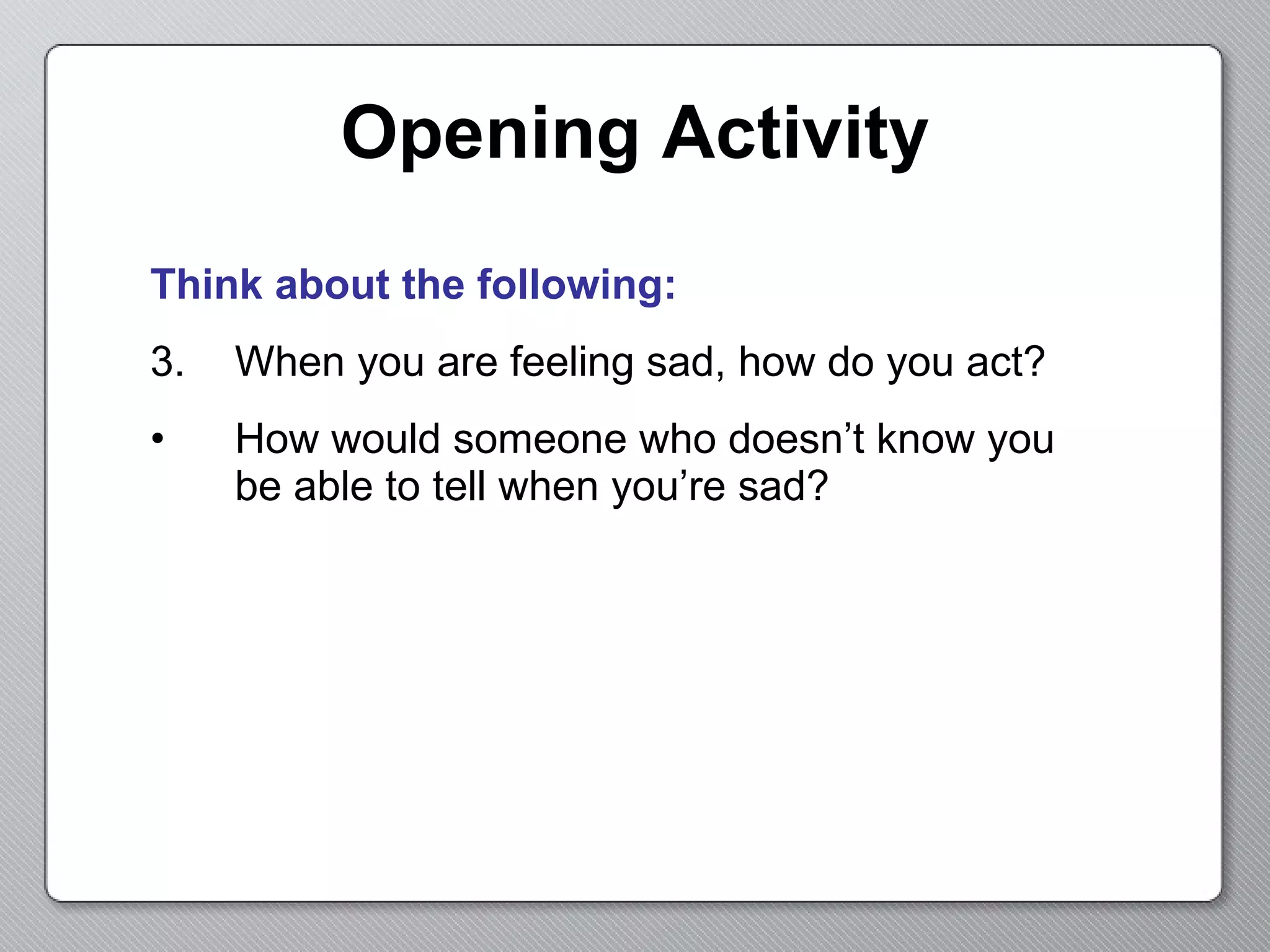 The document introduces ways for a robot to communicate its internal state through visual and audio cues. It discusses using the robot's display screen to show images or text, and its speaker to play sounds. Examples are given of using sounds to indicate when tasks are started or completed. Feedback is also introduced as a way to help programmers improve their work.