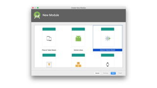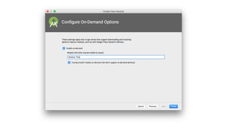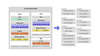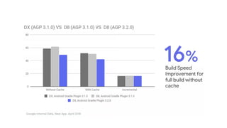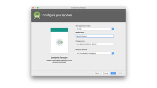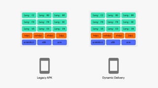 The document summarizes the new features in Android Studio 3.2 beta, including AndroidX for reorganizing Android support library packages, dynamic delivery of APKs using app bundles, and dynamic delivery of features using dynamic feature modules. It provides details on migrating to AndroidX, building app bundles and dynamic feature modules, and how they allow serving optimized APKs based on user device configuration. The release also includes improvements to the build tools, emulator, and other developer tools.