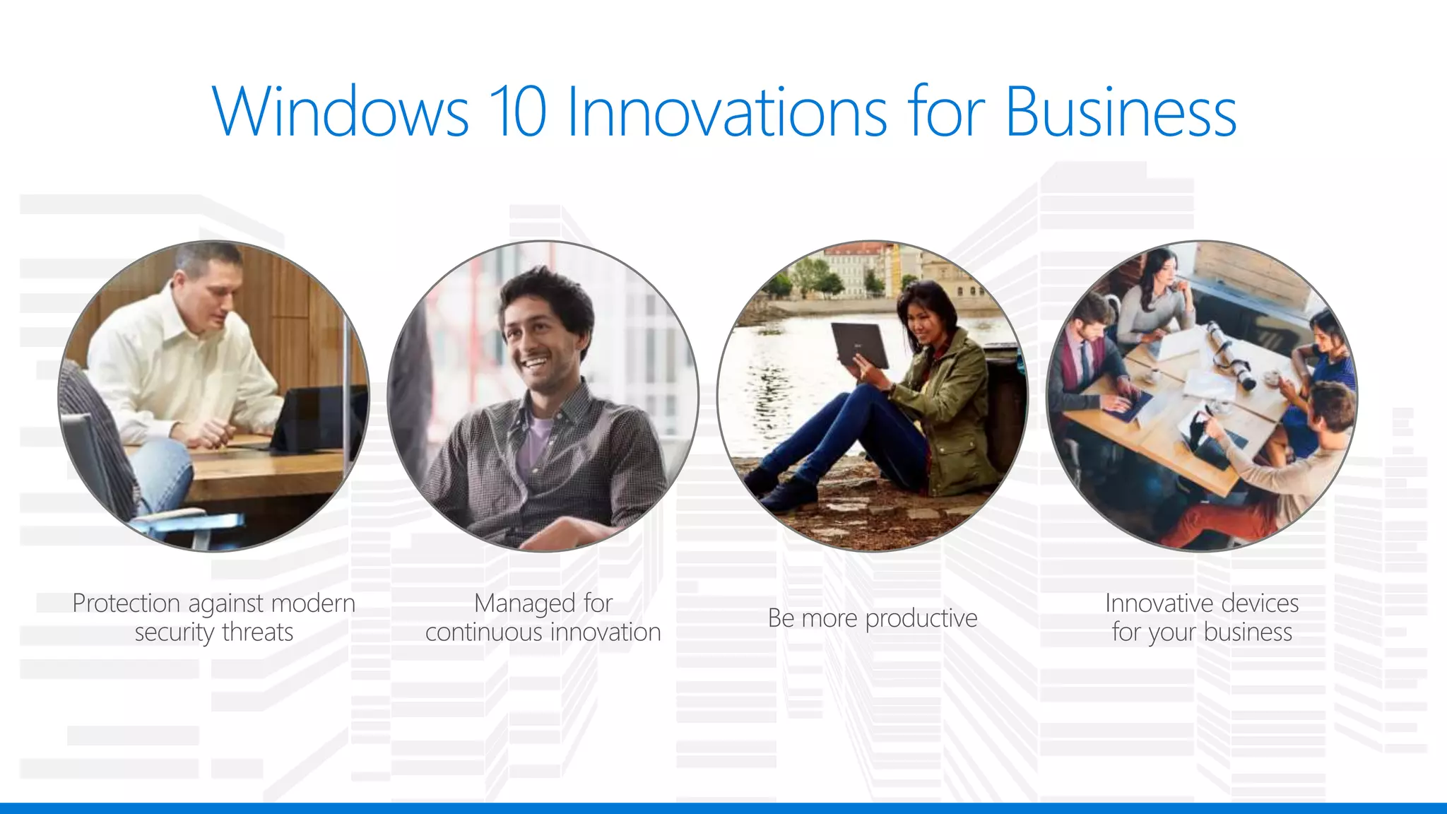 This document promotes upgrading to modern Windows devices and services for businesses. It summarizes that Windows provides innovative devices, protection against security threats, and management solutions to help businesses be more productive. Upgrading allows taking advantage of the latest hardware-based security, identity protection, data protection, and device management features to secure corporate data and modernize the business.