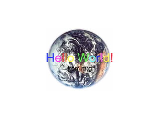 The document provides code examples for printing "Hello World!" in different programming languages and environments. It includes examples in HTML, PHP, Java, and Ruby. It explains how to save and run each example, and provides references for learning more about each language.