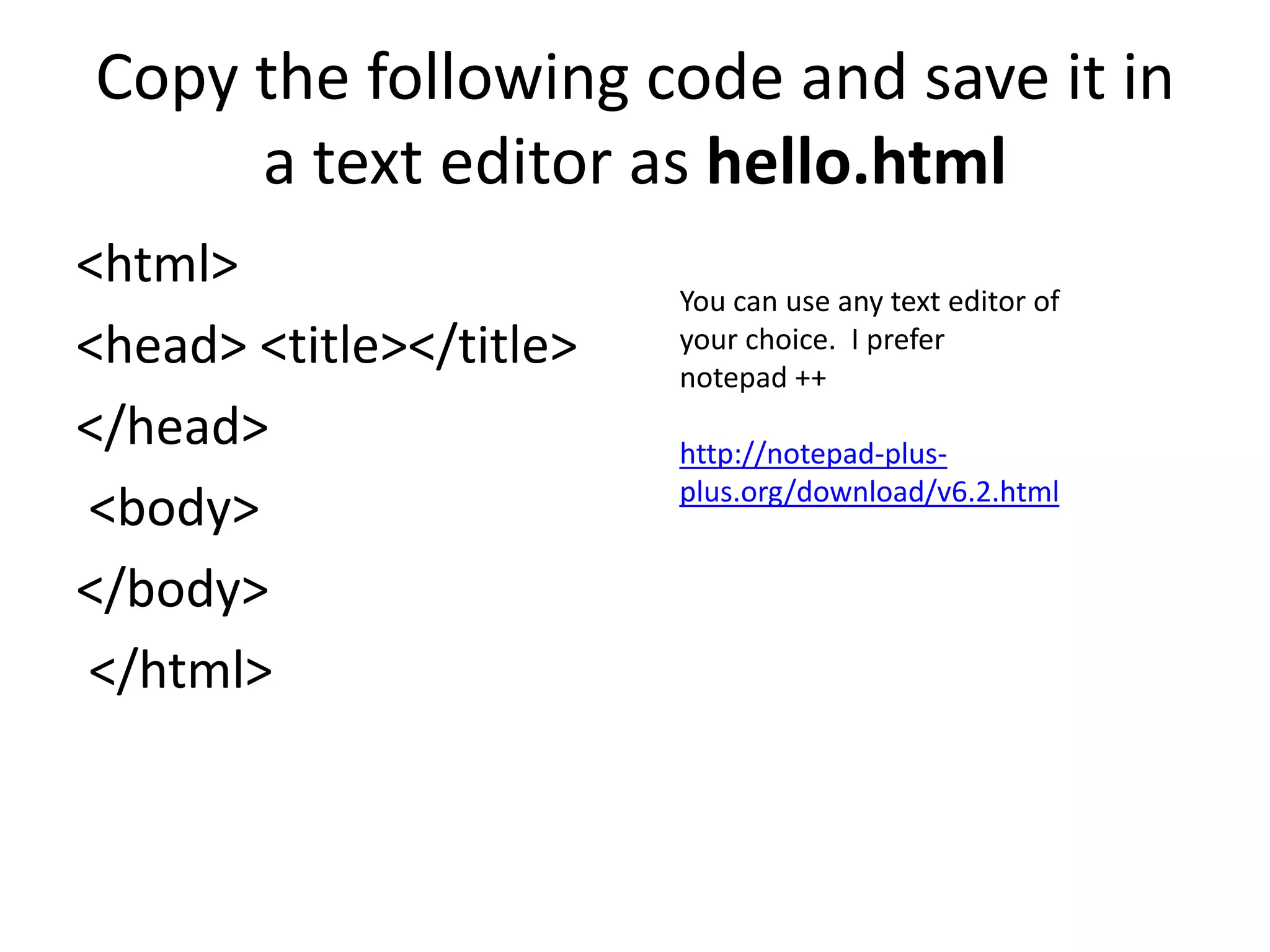 This tutorial teaches the basics of creating a "Hello World" program using JavaScript. It instructs the reader to [1] create an HTML file with script tags in the head to contain the JavaScript code, [2] define an empty function called "HelloWorld", and [3] add an alert box inside the function to display "Hello World!". It then shows how to [4] call the function when a link is clicked to execute the alert. Following these steps creates a simple JavaScript program that displays an alert when a link is clicked.