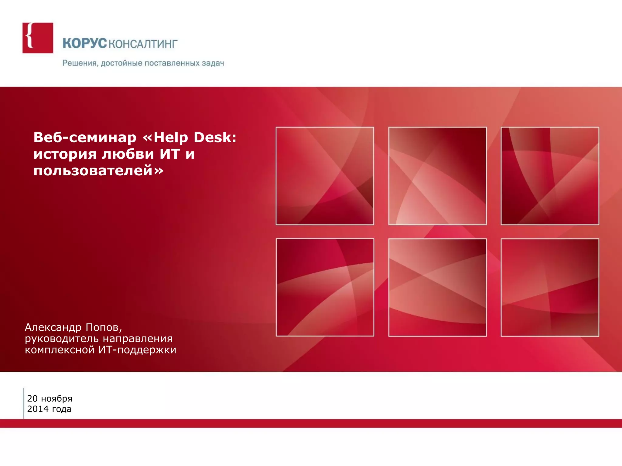 Веб-семинар посвящен внедрению help desk как способу минимизации конфликтов между IT-отделом и пользователями. Обсуждаются преимущества, виды help desk и важные аспекты для успешной реализации системы. Также подчеркивается значение единой точки входа и управление заявками для повышения эффективности работы.