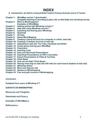 Ian Hall provides an overview of iMindmap version 7 software. He discusses downloading and installing the software. Hall then explains how to create a basic mind map on the topic of Ned Kelly by listening to an audio recording and placing the information into a mind map format using iMindmap version 7. Steps and screenshots are provided to demonstrate the mind mapping process.