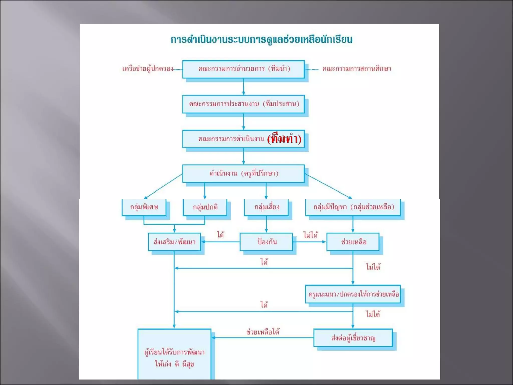 3.1 การรู้จักนักเรียนเป็นรายบุคคล3.1.1 ด้านความสามารถ ได้แก่ ด้านการเรียนและความสามารถด้านอื่น ๆ 3.1.2 ด้านสุขภาพ ได้แก่ ร่างกาย จิตใจ / พฤติกรรม 3.1.3 ด้านครอบครัว ได้แก่ เศรษฐกิจ การคุ้มครองนักเรียน 3.2 การคัดกรองนักเรียน 3.2.1 กลุ่มปกติ ( ไม่มีผลต่อการเรียน ) 3.2.2 กลุ่มมีปัญหา ( มีผลต่อการเรียนไม่รุนแรง ) 3 . 2 . 3 กลุ่มเสี่ยง ( มีผลต่อการเรียนอย่างรุนแรง ) 3.3 การส่งเสริม 3.4 การป้องกันและแก้ปัญหา 3.5 การส่งต่อ - 11.