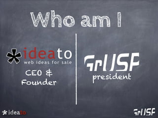This document discusses the history and evolution of Ideato, a non-profit organization that promotes good development practices through conferences and other activities. It started by organizing a free Italian conference but saw limited success. It then transitioned to an English conference with paid tickets that was more appealing to international attendees. However, it also created cheaper Italian conferences and initiatives to support the local community. After several successful years expanding its events, Ideato continues to help developers and communities grow through conferences and other learning opportunities.