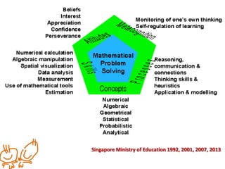 This document presents examples of learning math in a fun and effective way. It includes 7 examples of math word problems and activities involving ratios, number comparisons, story problems, visualization, and tangrams. The goal is to emphasize learning math through patterns, generalization, and hands-on activities. Schools from several countries are mentioned as places where these engaging math teaching methods can be applied.