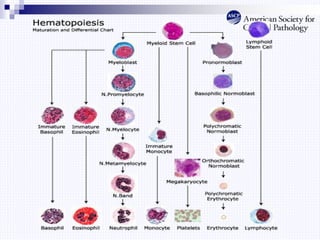 The document discusses the sites of hematopoiesis, or blood cell formation, at different stages of life. In a fetus, the yolk sac is the earliest site of hematopoiesis for the first 8 weeks. The liver and spleen then take over as the major sites from 2-5 months of gestation. By the 4th month, hematopoiesis begins in the bone marrow, which becomes the primary site after the 5th month until adulthood.