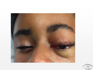 A 13-year-old male presented with headache, decreased vision, and left eye pain following a hair pulling incident at school 5 days prior. CT scans showed progression of a subgaleal hematoma that extended into the left orbit, causing complete ophthalmoplegia and orbital compartment syndrome. The patient underwent emergent canthotomy/cantholysis and anterior orbitotomy with hematoma evacuation. Subgaleal hematomas can extend into the orbit in children due to loosely attached tissues, causing vision loss if not treated urgently.