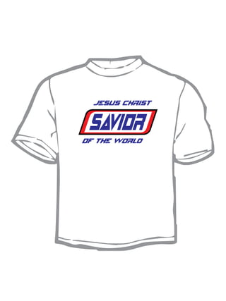 This document contains religious messages and Bible verses promoting Jesus Christ as the savior and salvation. Phrases include "Jesus Christ Savior of the World", "God's Favourite Girl", "Stick with Jesus", "My Savior is...", and verses such as Romans 8:11, John 3:16, and Ephesians 2:8 about being saved through faith in Jesus.