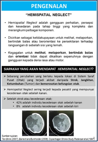 Buku ini menceritakan tentang Hemispatial Neglect & bagaimana cara mengatasi masalah tersebut. Ia menceritakan secara mendalam tentang rawatan yang dilakukan oleh Pemulihan Cara Kerja.