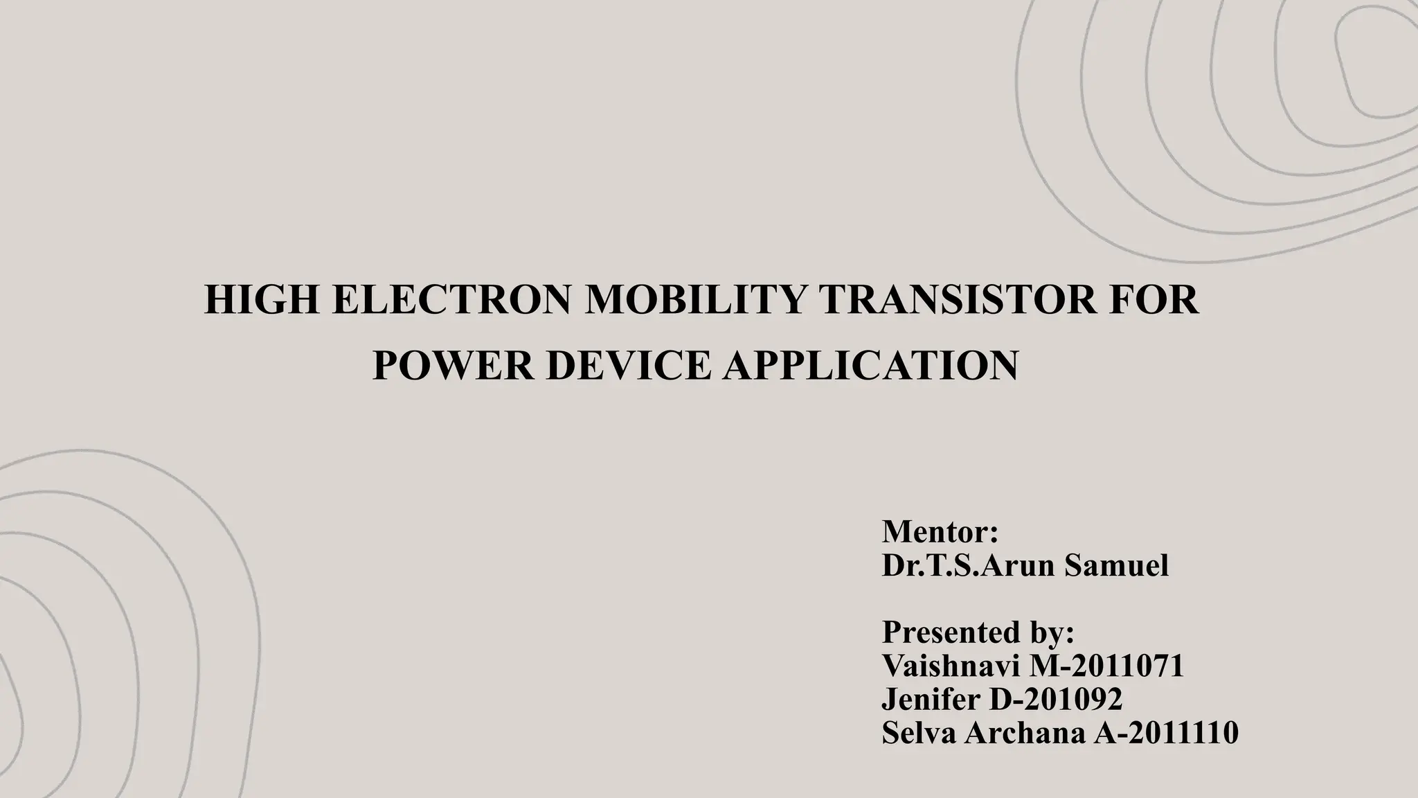 The document discusses high electron mobility transistors (HEMTs), focusing on their optimization for high-frequency performance and advantages such as high speed and low noise. It reviews challenges in fabrication of aluminum gallium nitride (AlGaN)/gallium nitride (GaN) HEMTs and outlines advancements in GaN-based power devices for efficient power conversion. The document emphasizes the importance of material properties, design optimizations, and innovative integration methods for enhancing device performance in future applications.