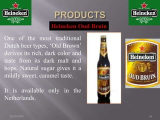 Heineken is a family-owned brewery established in the 1800s in the Netherlands. Over 251 years later, it has become the largest brewer in the world with operations in over 170 countries. It produces several specialty beers in addition to its flagship Heineken Pilsener brand. While continuing to innovate, Heineken acquires other brands to expand its portfolio. Its top competitors include Budweiser, the largest brewer in the US, and Kingfisher, one of the top brands in India, which positions itself as promoting good times.