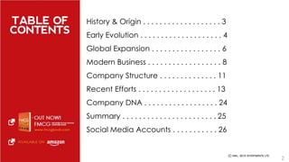 Henkel, founded in 1876 in Germany, evolved from producing detergents to becoming a global leader in adhesive technologies and personal care products, with significant expansions throughout the 20th century. The company has maintained innovative practices, focusing on sustainability and profitability while generating a substantial portion of its revenue from emerging markets. As of 2012, Henkel reported a turnover of $20 billion, highlighting its strategic advantage in both consumer goods and industrial supplies.