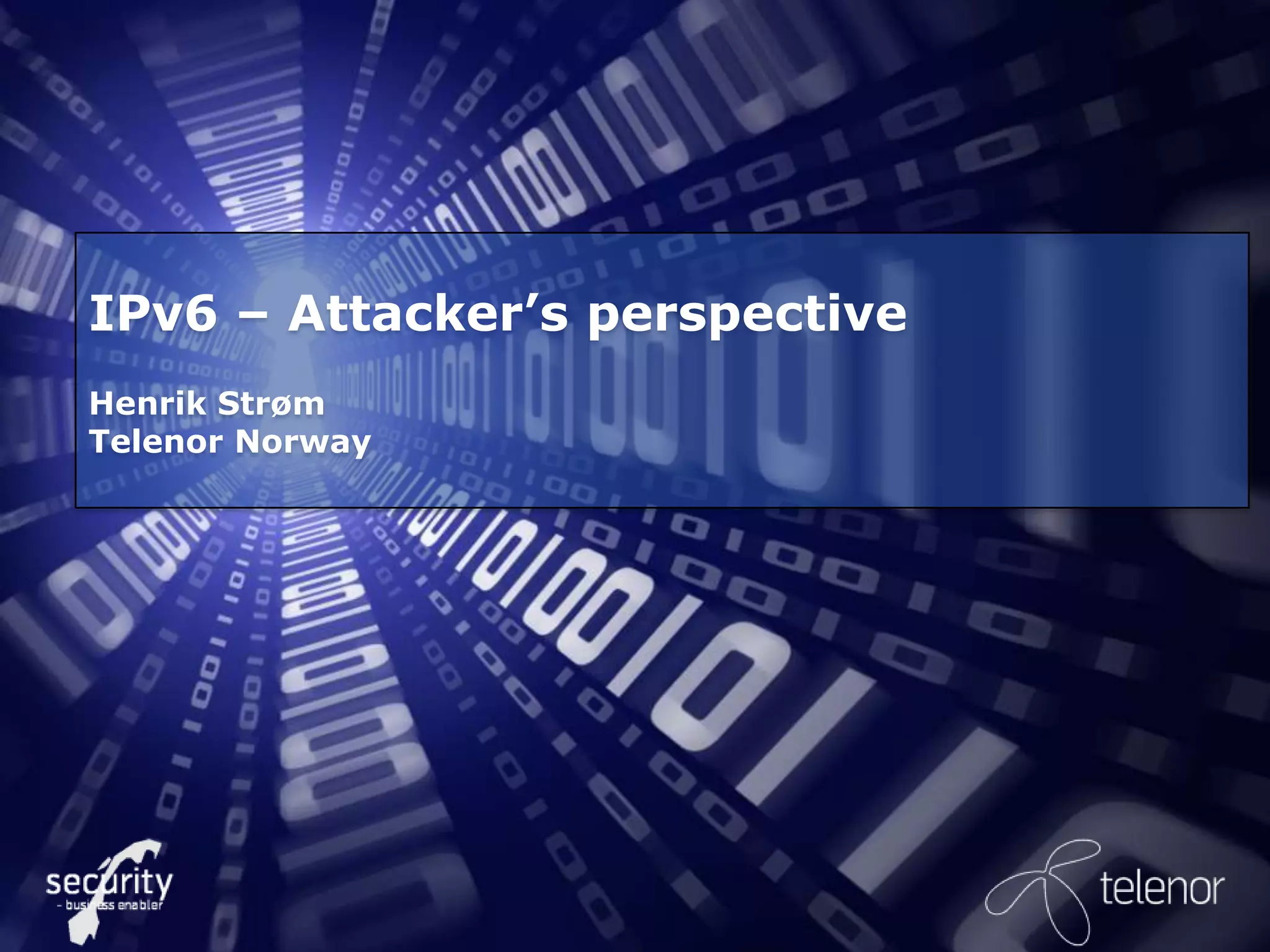 Henrik Strøm discusses IPv6 security from an attacker's perspective. He outlines 6 points on how attackers can exploit IPv6 vulnerabilities, including using IPv6 to bypass IPv4 access controls when on a local network, spoofing router advertisements to hijack traffic, using tunneling to enable inbound and outbound connectivity, and launching denial of service attacks. He recommends network administrators decide how to implement IPv6 security, monitor for IPv6 traffic, harden clients and servers, and filter all types of IPv6 tunneling. Further reading suggests there is still significant work needed on IPv6 firewalling and many IPv4 issues have been transferred to IPv6.