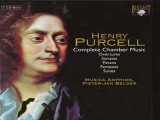 Este documento proporciona enlaces a cuatro piezas musicales: la ópera "Dido y Eneas", la "Oda a Santa Cecilia", la "Marcha Funeral de la Reina María" y la "Sonata para Trompeta". Los enlaces llevan a videos de YouTube de cada una de las obras musicales mencionadas.