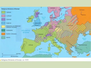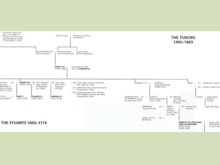 Henry VIII became King of England in 1509 at age 17. He had six wives - Catherine of Aragon, Anne Boleyn, Jane Seymour, Anne of Cleves, Katherine Howard, and Katherine Parr. Henry broke ties with Rome and the Catholic Church after failing to have his marriage to Catherine annulled, establishing the Church of England with himself as its head. Henry was an educated and talented Renaissance prince, known for his passion for music and collection of instruments. The document also provides background on Northern Renaissance art and artists such as Holbein, Durer, and Van Eyck.