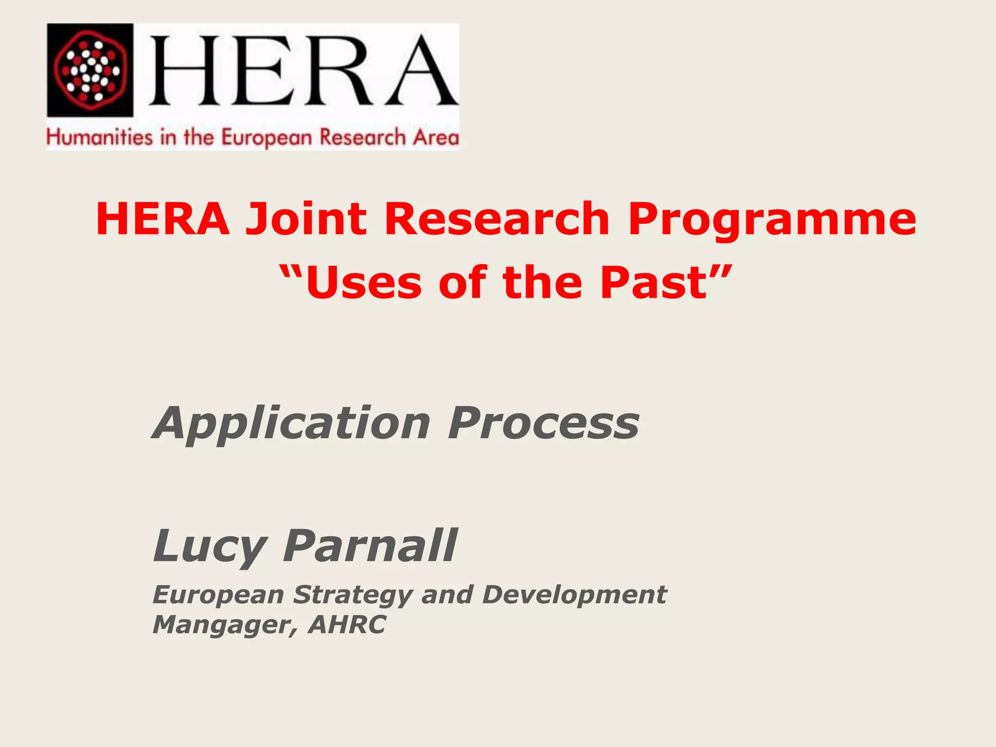 This document provides information about applying for funding from the HERA Joint Research Programme on the theme of "Uses of the Past". Key points: