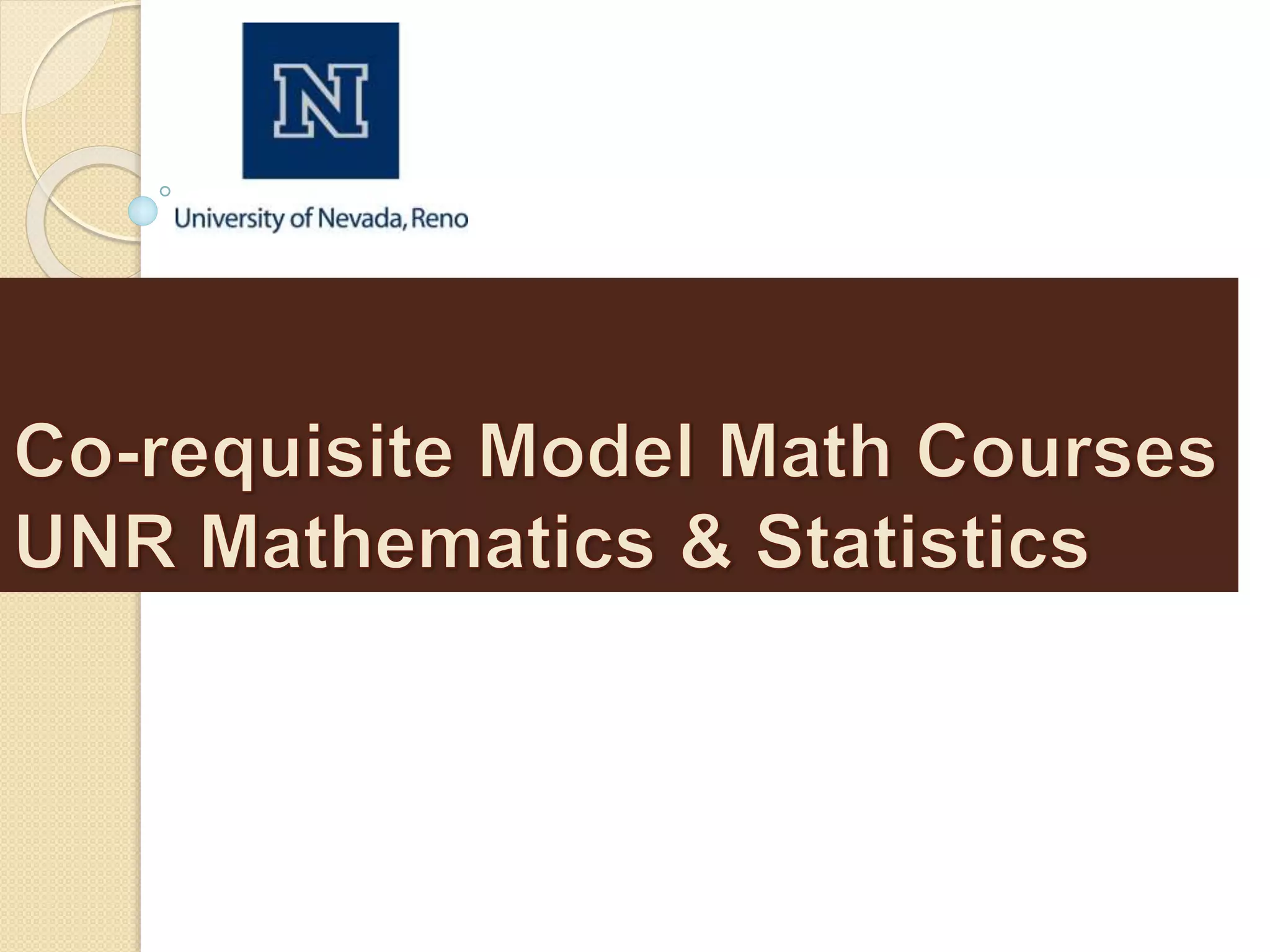 This document discusses Nevada's transition to a co-requisite model for remedial and college-level math courses. It finds that the co-requisite model improves success rates for liberal arts students by allowing them to complete their math requirement in one semester instead of two. For students who previously took remedial math, success rates in college-level courses like College Algebra were 70-90% under the new model compared to 56-81% previously. The co-requisite model also allows more remedial students to earn college credit in their first year. The main challenges are staffing smaller co-requisite sections and funding the credit-bearing college courses.