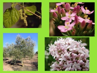 Olivera (Olea europoeaL.)Descripció: Arbre baix, amb vida llarga, procedent del Mediterrani Oriental. El seu tronc es irregular, gros i retorçat. Les fules són persistents, el·líptiques, estretes, senceres, puntiagudes i verdes. Les flors són blanques i petites. El fruit es l’oliva.PROPIETATS: Cura l’estrenyiment, l’enverinament,febre, i l’hipertensió...PARTS ÚTILS: Escorça, fulles, olives i olis.USOS: Infusions, decoccions, bàlsams i usos culinàris.