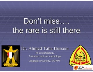 This document discusses the case of a 23-year-old male patient who presented with dyspnea and chest pain. After extensive testing and examination, he was diagnosed with transthyretin cardiac amyloidosis (TTR-CM), a rare hereditary form of amyloidosis. The document compares TTR-CM to other types of amyloidosis and discusses the patient's family history, treatment options, and prognosis. Tissue Doppler imaging and biopsy were important for confirming the diagnosis. While rare, this case demonstrates that TTR-CM can still occur and requires an integrated approach to diagnose.