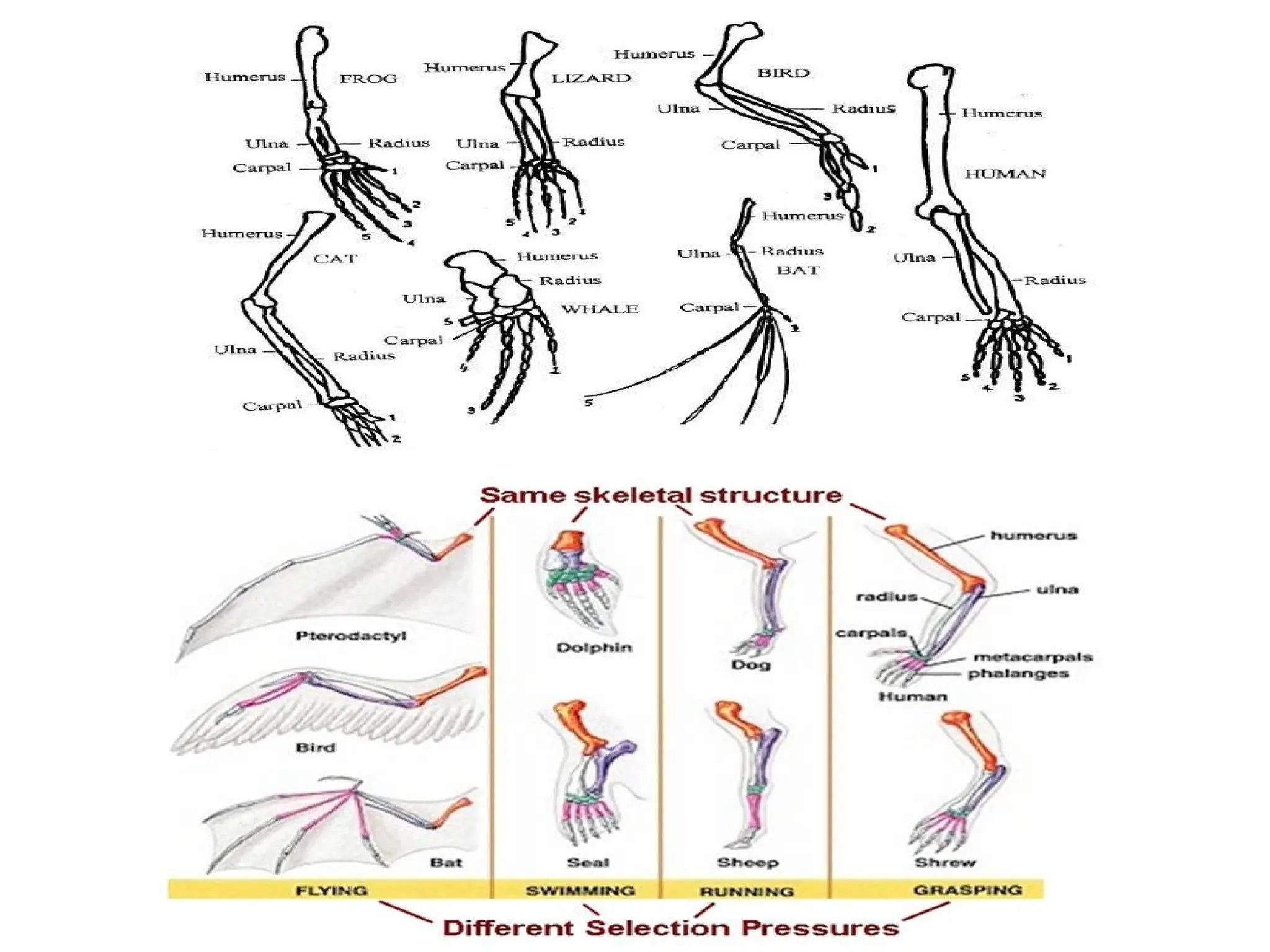 flying etc. This shows evolutionary relationship.