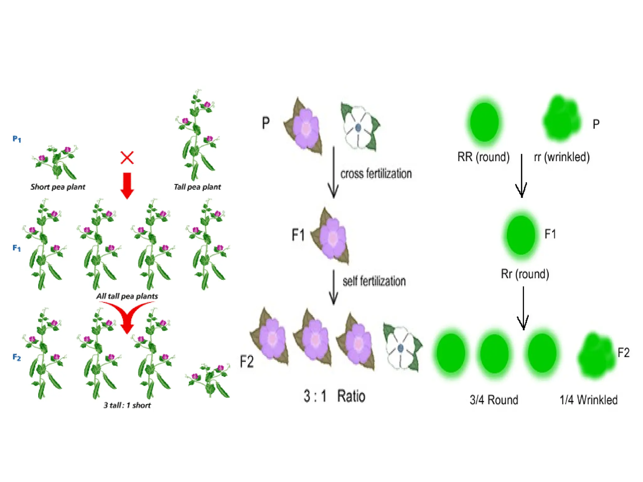 a short pea plant. He selected pure tall (TT) and pure short (tt) pea plants and