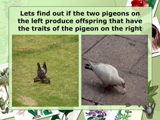 1. The document explains how to use a Punnett square to determine the possible genotypes and phenotypes of offspring from parent genotypes.