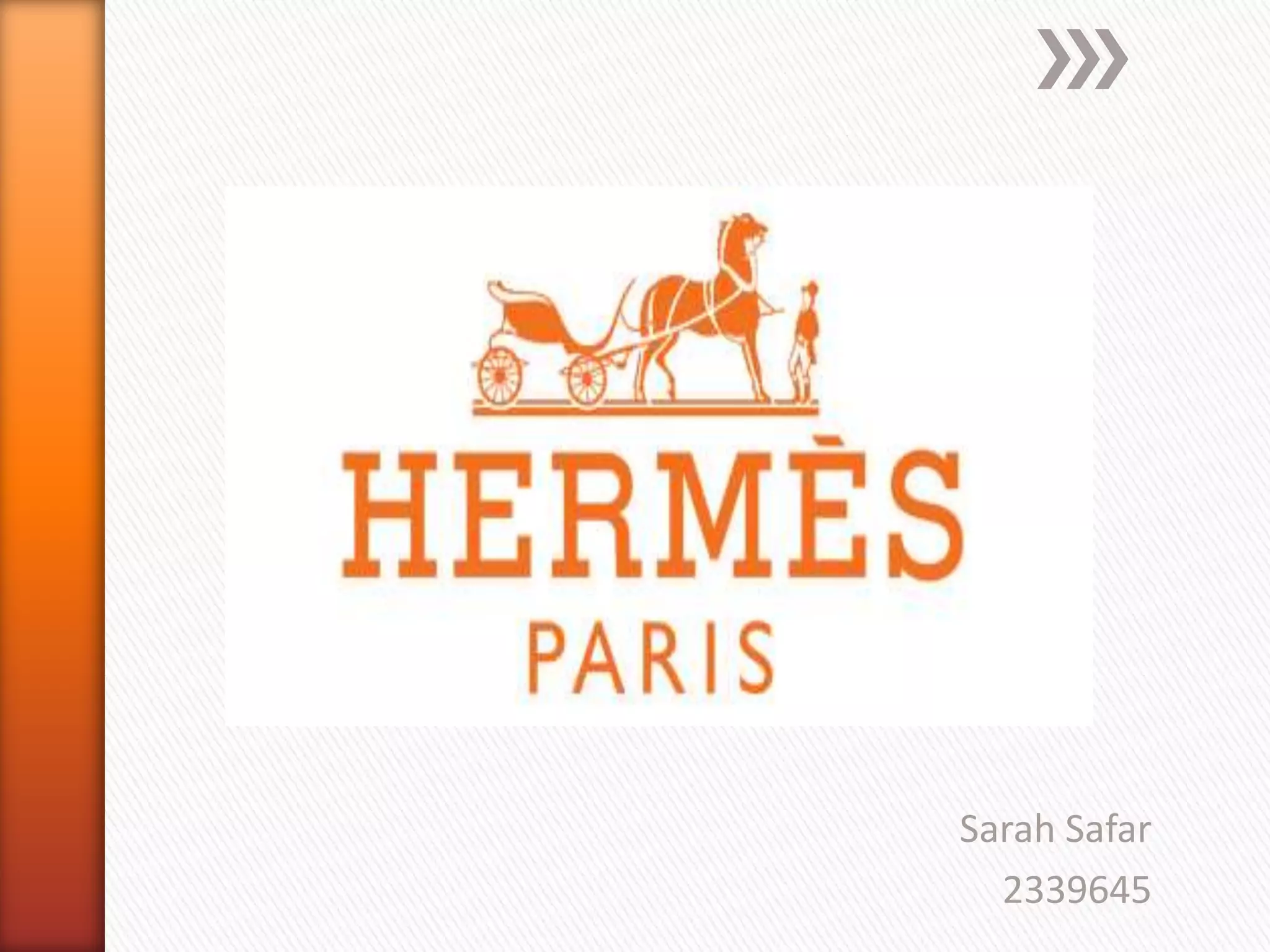 Hermès is a French luxury brand founded in 1837 known for leather goods, clothing, and accessories. It began as a harness workshop but introduced saddles and leather bags in the early 20th century. The Birkin bag, named after actress Jane Birkin, became extremely popular in the 1980s and remains one of Hermès' most iconic and sought-after products due to its high quality craftsmanship and limited availability.