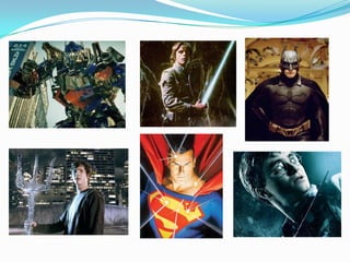 The document discusses the archetype of the hero and common traits they possess. Heroes often have unusual birth circumstances and feel isolated from peers. They go on a journey that leads to finding their purpose, during which they encounter evil and suffer. Heroes possess a special weapon only they can wield and have at least some of these common qualities.