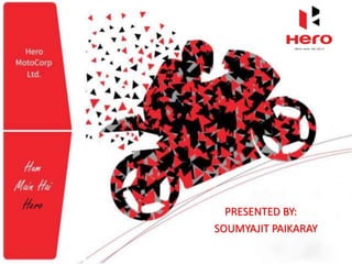 Hero MotoCorp is the largest motorcycle manufacturer in India and worldwide. It was founded in 1984 as a joint venture between Hero Cycles of India and Honda of Japan called Hero Honda Motors. In 2010, Honda exited the venture and Hero Group became the sole owner, rebranding it as Hero MotoCorp in 2011. Hero MotoCorp has a wide range of motorcycle and scooter models priced for all income groups. It focuses on building its brand and expanding globally while continuing to invest in new technologies and customer satisfaction.