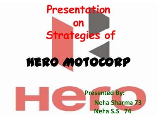 Hero MotoCorp is an Indian motorcycle and scooter manufacturer. It was founded by Brij Mohan Lal Munjal and is currently led by Chairman Pawan Munjal. Some of its key strategies are to build a strong portfolio of products, explore global growth opportunities, improve operational efficiency, aggressively expand its customer reach, invest in brand building, and ensure customer and shareholder delight. It aims to become the world's best two-wheeler company.