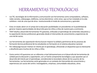• Estas sin dudas abren en el campo de la educación posibilidades sin precedentes en la posibilidad de