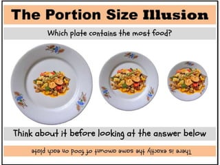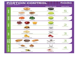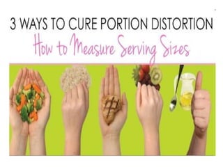 2) Portion control knows the correct serving sizes of foods based on calories and fat to lose weight healthily.