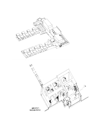 Hassan Fathy was an Egyptian architect born in 1900 in Alexandria. He is known for promoting the use of traditional Egyptian architectural elements and vernacular building methods. He was inspired by mud brick construction techniques used in Nubian architecture. Some of his most notable works included villages built using local materials like mud bricks, with architectural features like domes and vaults. Fathy established a private practice in Cairo and worked on projects for organizations like the United Nations. He received several awards for his contributions to environmentally sustainable architecture.