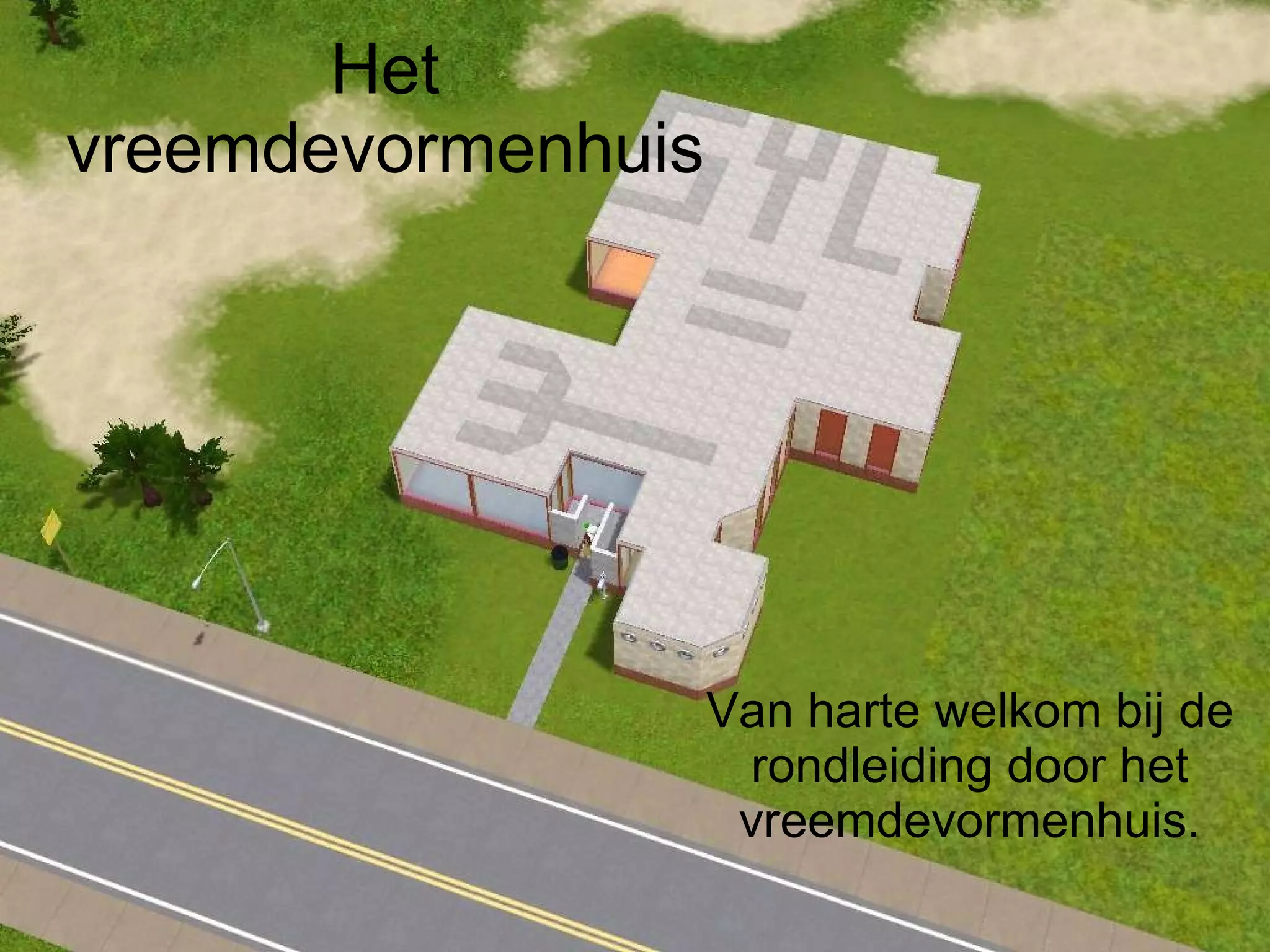 Hallo, ik benGertrude Gids en ik ga jullie vandaag dit prachtige huis laten zien. Zoals je al hebt gezien is dit geen standaard huis maar een vreemd gevormde. Heb je er al zin in? Kom maar mee!
