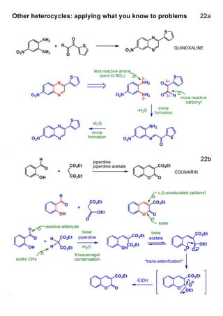 2. Students will learn to draw and name heterocycles, distinguish reaction types, predict products, apply reaction mechanisms, draw synthesis sequences, and explain isomer distributions.
