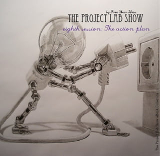 This document is an eBook promoting the Project Lab Show, an innovative course on project management created by Free Your Ideas in 2008. The course emphasizes interactive and people-focused learning across 12 sessions, covering essential project management concepts and methodologies, and culminates in participants presenting their own projects. The first session is free, with limited spots available, and the course aims to improve business performance and foster effective teamwork.
