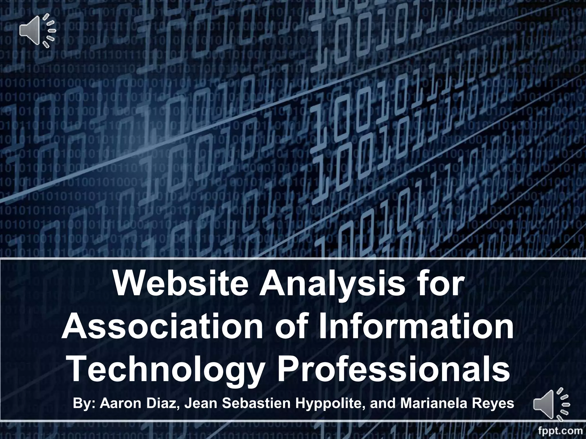 The document analyzes the website of the Association of Information Technology Professionals (AITP) and offers a heuristic evaluation highlighting key concerns such as overwhelming navigation, unorganized storefront, and outdated visual design. It provides recommendations to enhance user experience, including condensing navigation, implementing visual cues, and revamping the storefront layout. Overall, the evaluation aims to position AITP as a leading society for technology professionals by improving its online presence and functionality.