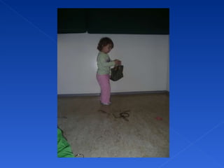 Children aged 1-3 are encouraged to explore their environment and discover objects through their senses in small, unstructured groups with adult supervision. The goal is for children to investigate materials on their own terms to stimulate learning and language development in a secure setting. Activities are initially set up by adults but then children are free to explore the possibilities through filling and emptying containers, sorting objects, and balancing items to discover similarities and differences on their own terms.