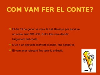 • Tota l’escola ha participat del conte inventant, escrivint i il·lustrant les
