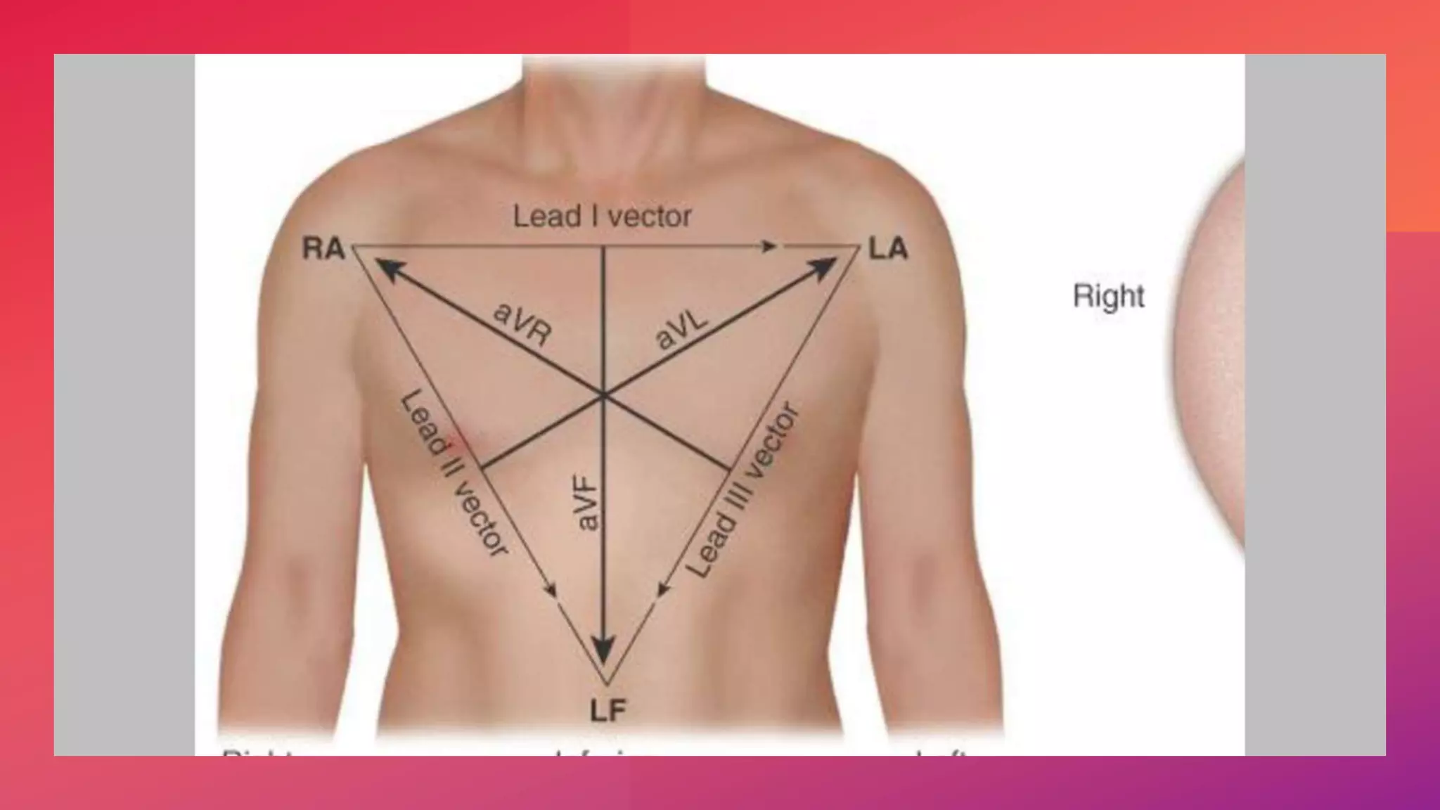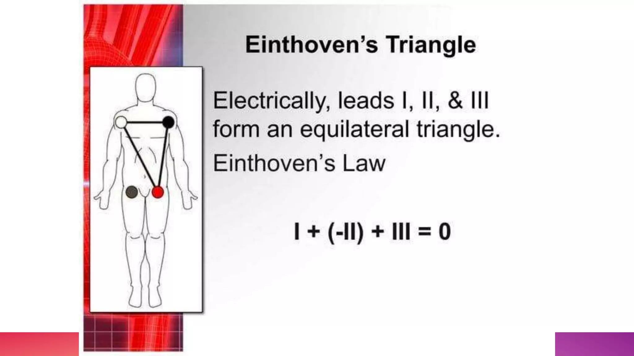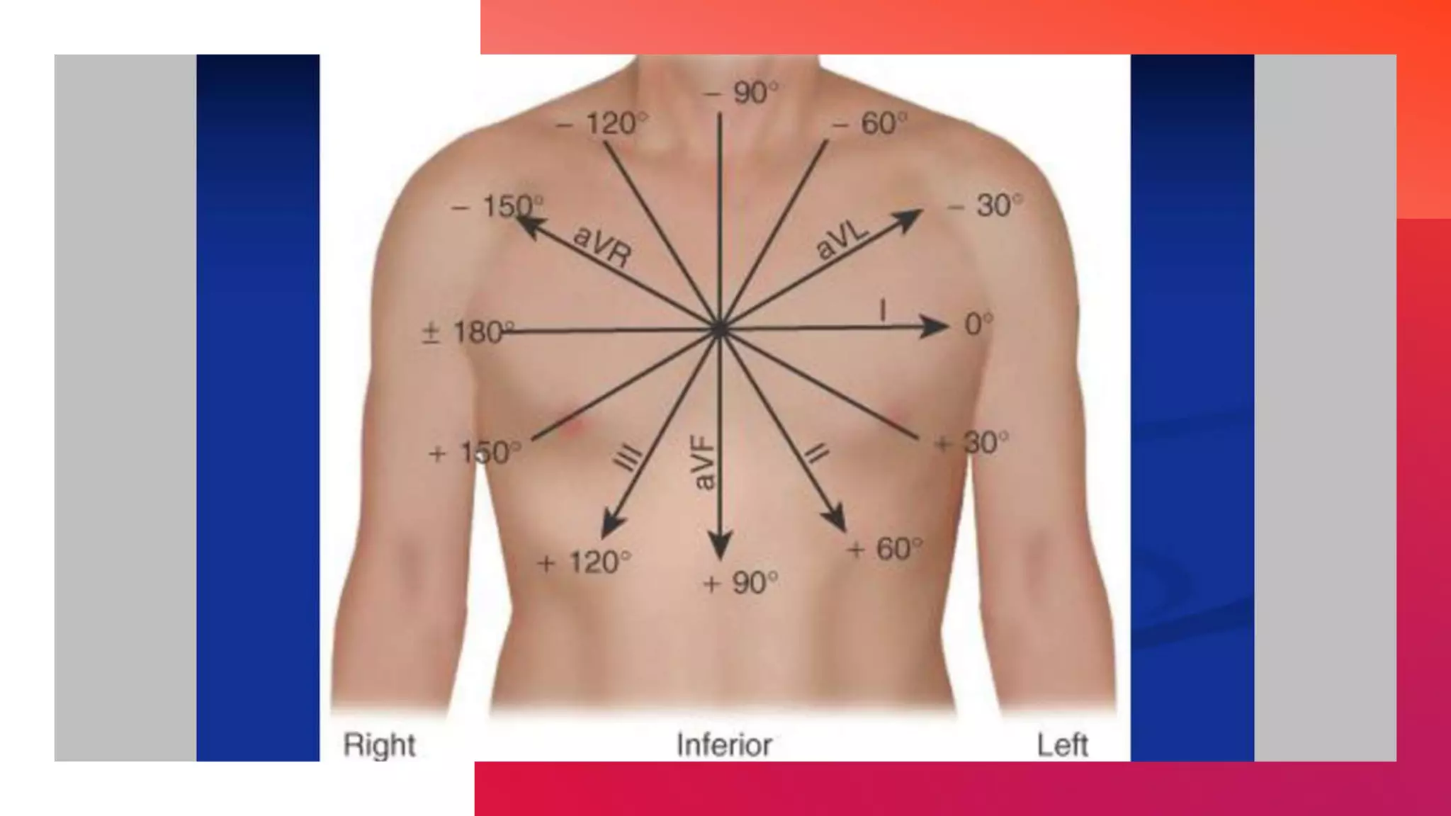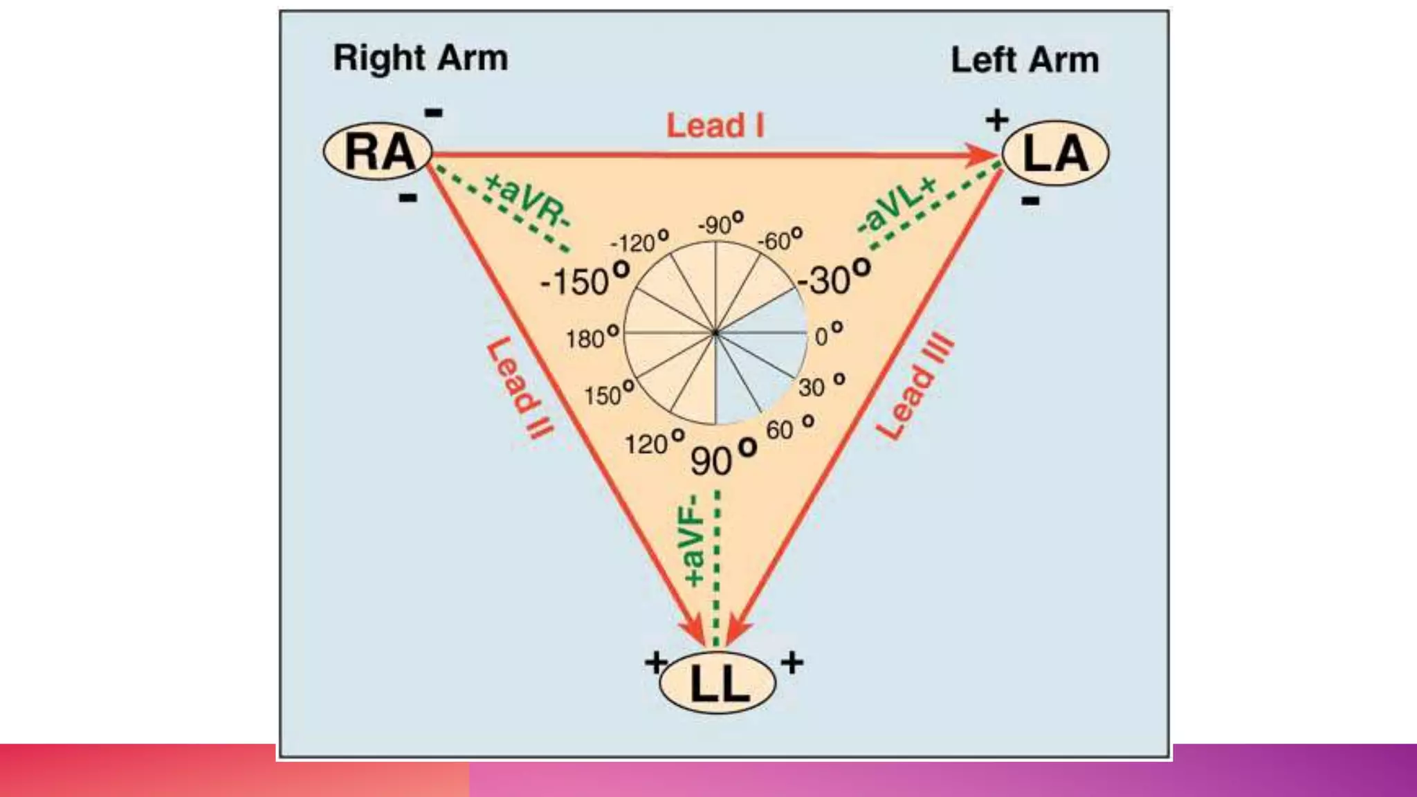 The document discusses the triaxial and hexaxial reference systems used in electrocardiography, specifically focusing on the standard lead configuration forming Einthoven's equilateral triangle. It explains the construction of unipolar leads that bisect this triangle's angles and the resulting combined hexaxial reference system that graphically represents electrical axes in the frontal plane. It also describes the confusing convention used for labeling degrees in the hexaxial system.