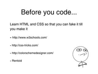 Elisha Tan, a non-technical founder, shares insights for non-techie entrepreneurs on whether they should learn coding, the benefits of doing so, and essential resources to get started. Having struggled to find a technical co-founder, she emphasizes the importance of understanding programming to improve communication with developers and contribute to product decisions. The document provides practical learning resources and encourages founders to fake proficiency while building their first MVP.