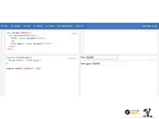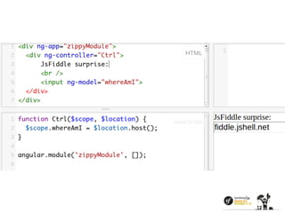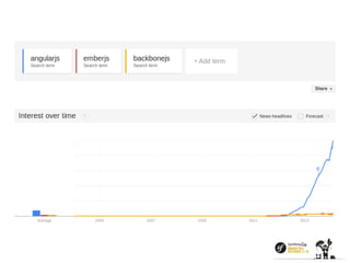 The document discusses AngularJS, including its key features like two-way data binding, dependency injection, directives, and support. It notes AngularJS provides a solid foundation, works well with the JavaScript ecosystem, and enables modern API-oriented architectures. Potential downsides discussed include excessive watchers negatively impacting performance, and the learning curve being harder than expected. It emphasizes understanding how browsers implement AngularJS applications and using developer tools. It also covers AngularJS 2.0 changes and questions around whether AngularJS is the future or if other solutions may be preferable for larger projects.