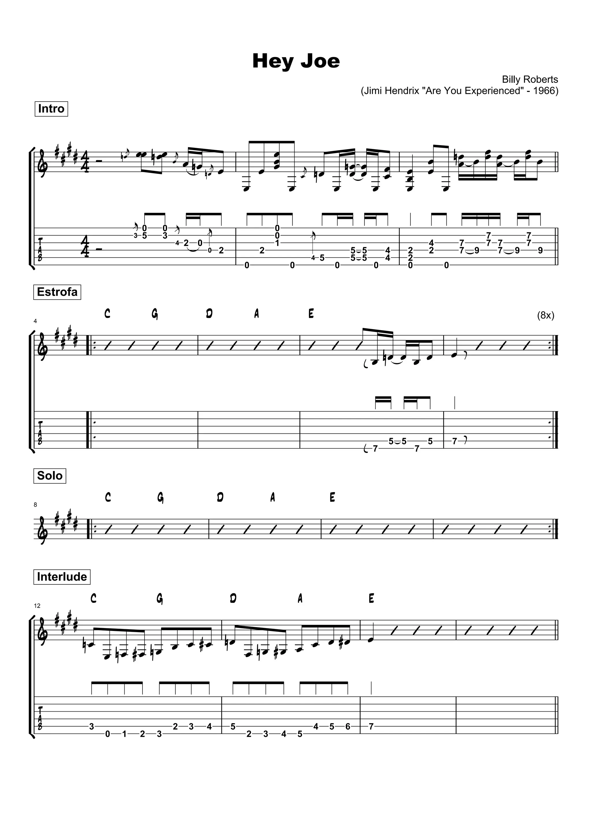 Billy Roberts (Jimi Hendrix "Are You Experienced" - 1966) Intro 0 0 0 5 3 0 7 7 3 4 2 0 0 2 2 1 5 5 4 2 4 2 7 7 9 7 7 7 9 7 9 4 5 5 5 4 2 0 0 0 0 0 0 Estrofa C G D A E (8x) 4 7 5 5 7 5 7 Solo C G D A E 8 Interlude C G D A E 12 3 0 1 2 3 2 3 4 5 2 3 4 5 4 5 6 7