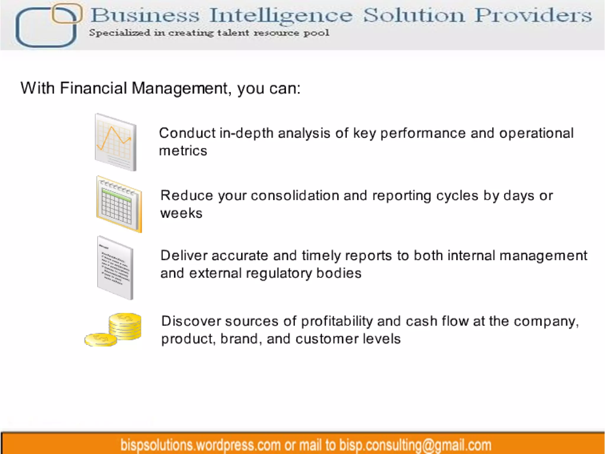 Hyperion Financial Management is a financial consolidation and reporting application that allows financial managers to rapidly close and report financial results. It provides the ability to consolidate financial data from diverse locations and multiple general ledgers, perform multi-currency conversions, and streamline data collection processes. Financial consolidation involves merging the financial statements of a parent company and its subsidiaries to assess the overall health of the entire group. Hyperion Financial Management includes features like data validation, currency translation, automatic eliminations, and reporting tools to facilitate the financial consolidation process.
