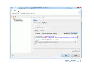 This document provides guidance on effective application development in IBM Integration Bus. It discusses designing applications with IIB facilities, considering performance and scalability, designing for administration, using interfaces, and designing consistently. The key recommendations are to use built-in nodes, subflows, and shared libraries; consider message size and avoid loops; use applications and shared libraries; leverage built-in patterns; and thoroughly test applications.