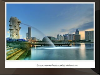 Сингапур 2001 ондСингапур улс нь Зүүн Азийн нутаг дэвсгэрт Малайз Индонез 2 ын хооронд орших далайн эргийн томоохон боомт арлын хот улс. 5 сая хүн амтай. Хятад 70 хувь малай энэтхэг үндэстэн амьдардаг. - 5.