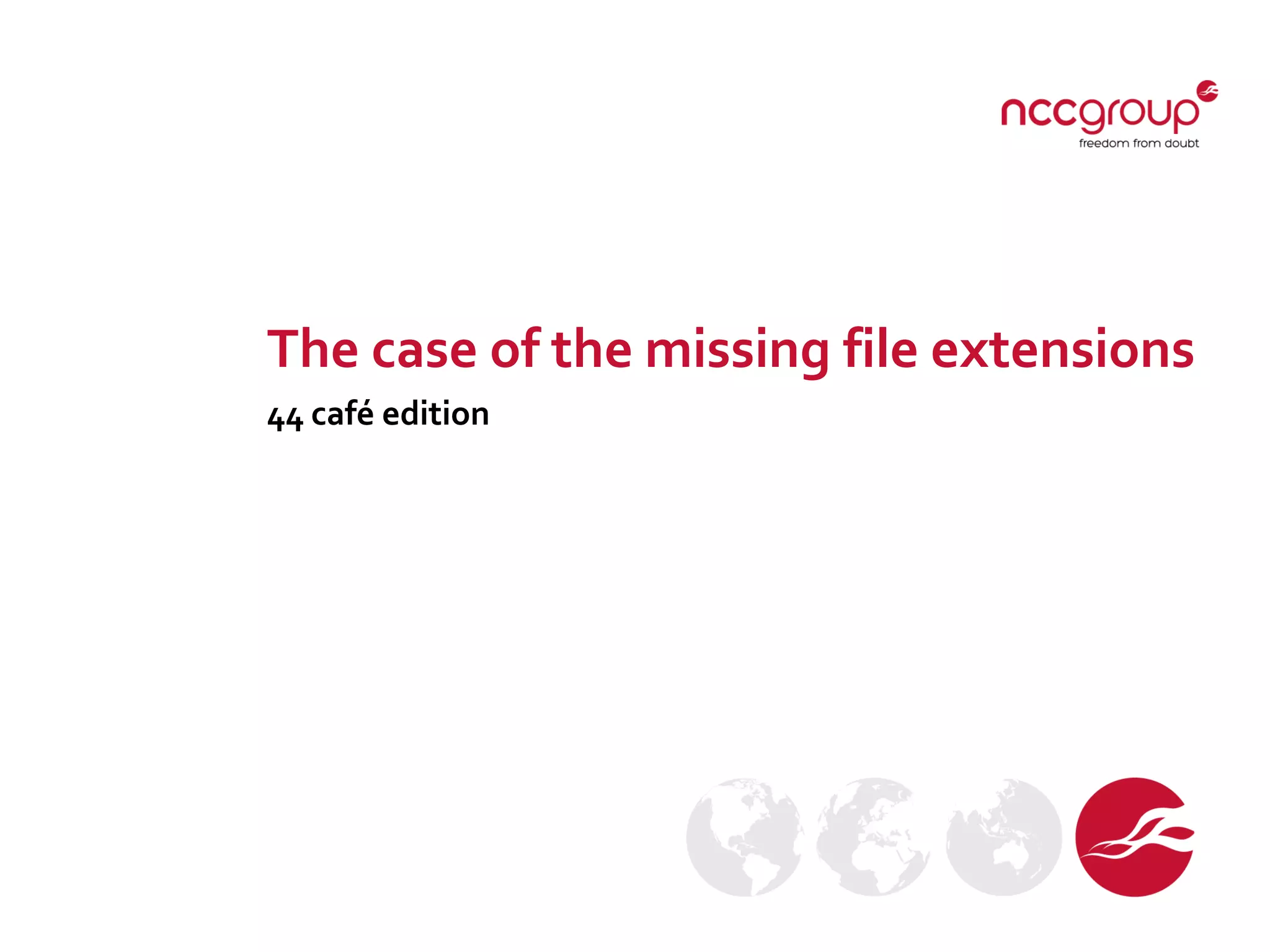 The document discusses the issue of certain Windows file extensions being hidden regardless of user settings, which poses security risks by potentially allowing malicious code execution. It details the registry values associated with hidden file extensions, specifically targeting Microsoft Access and shortcut files, and highlights how these could be exploited. The conclusion emphasizes the need for caution when interacting with files that may have hidden extensions to avoid running malware.
