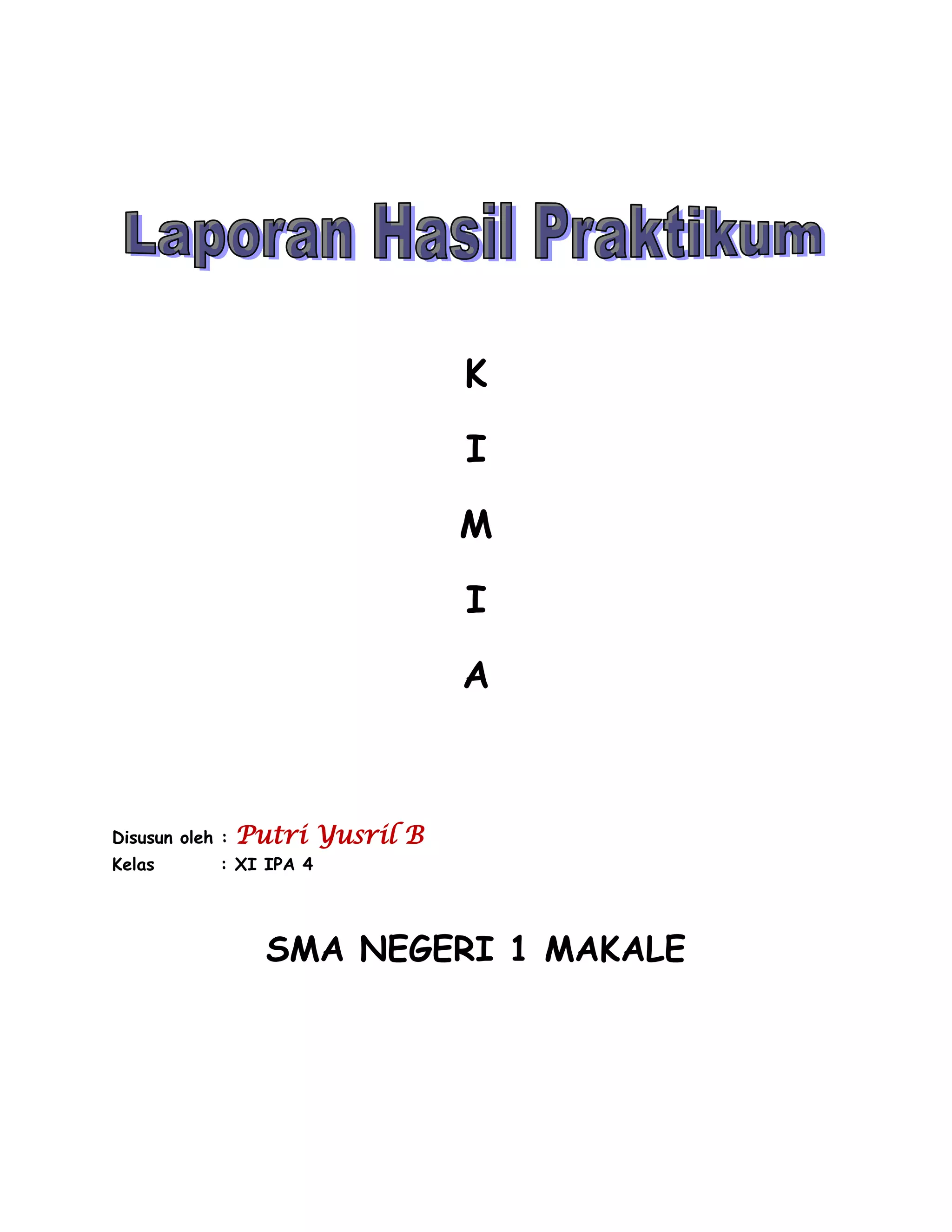 Laporan akhir praktikum kimia ini disusun untuk menunjukkan hasil percobaan tentang hidrolisis garam dan sifat larutannya. Hasil eksperimen menunjukkan bahwa garam dengan asam kuat dan basa kuat bersifat netral, sementara kombinasi asam lemah dan basa kuat menghasilkan sifat basa, dan sebaliknya, asam kuat dengan basa lemah menghasilkan sifat asam. Penulis berharap laporan ini dapat bermanfaat meskipun menyadari adanya kesalahan dan mengharapkan kritik yang membangun.